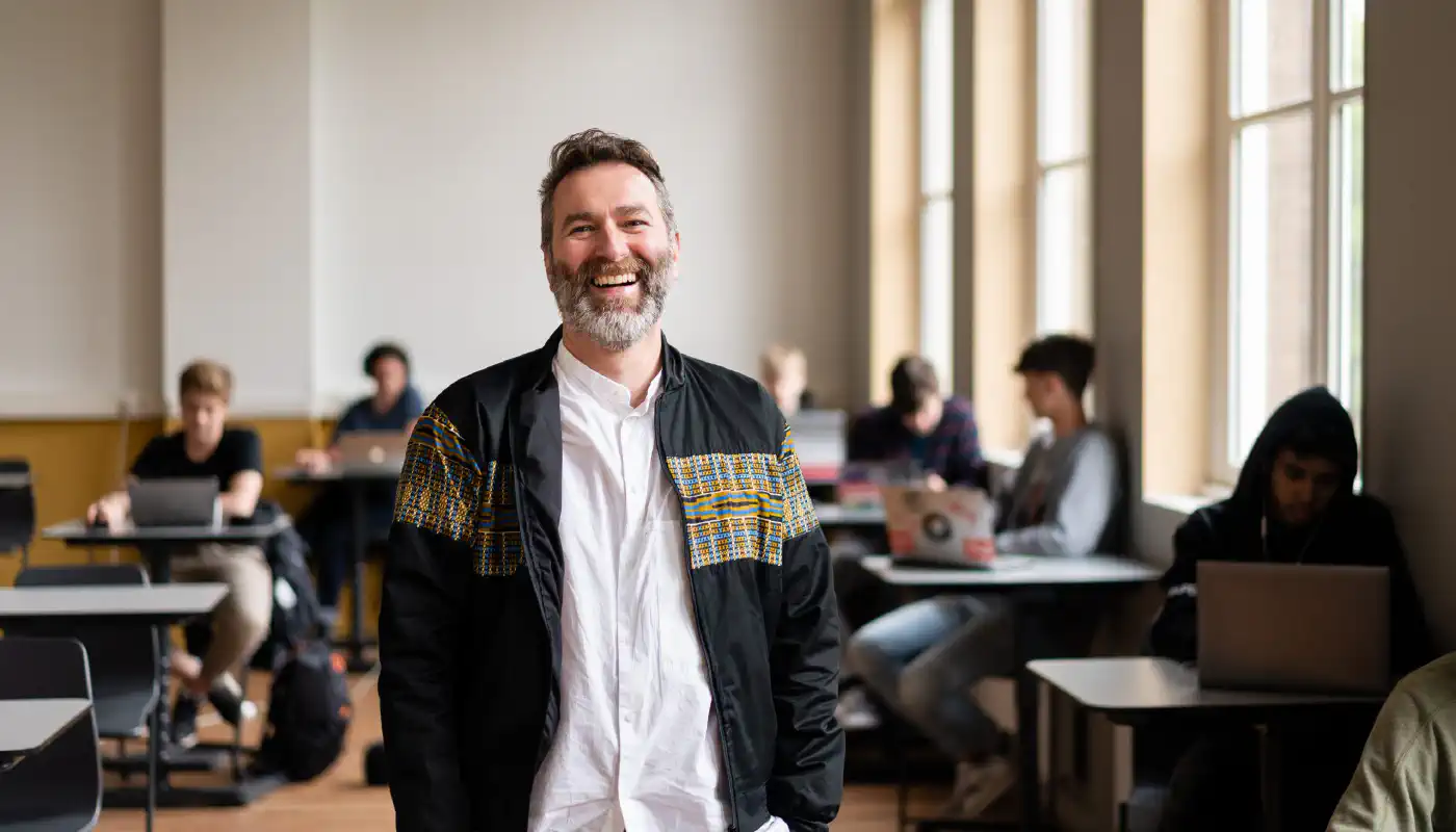 Naam Pascal Waegeneire (41), docent op Cartesius 2 (vwo+ en havo/vwo) in Amsterdam-Centrum